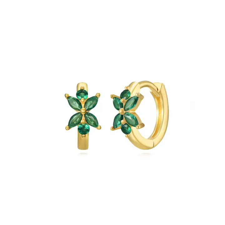 Mono boucle dorée avec fleurs vertes en zircon en argent sterling 925 💎💧🔹