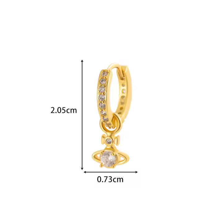 Mono Boucle dorée avec strass et pendentif planète en Acier Inoxydable 💎💧🔹