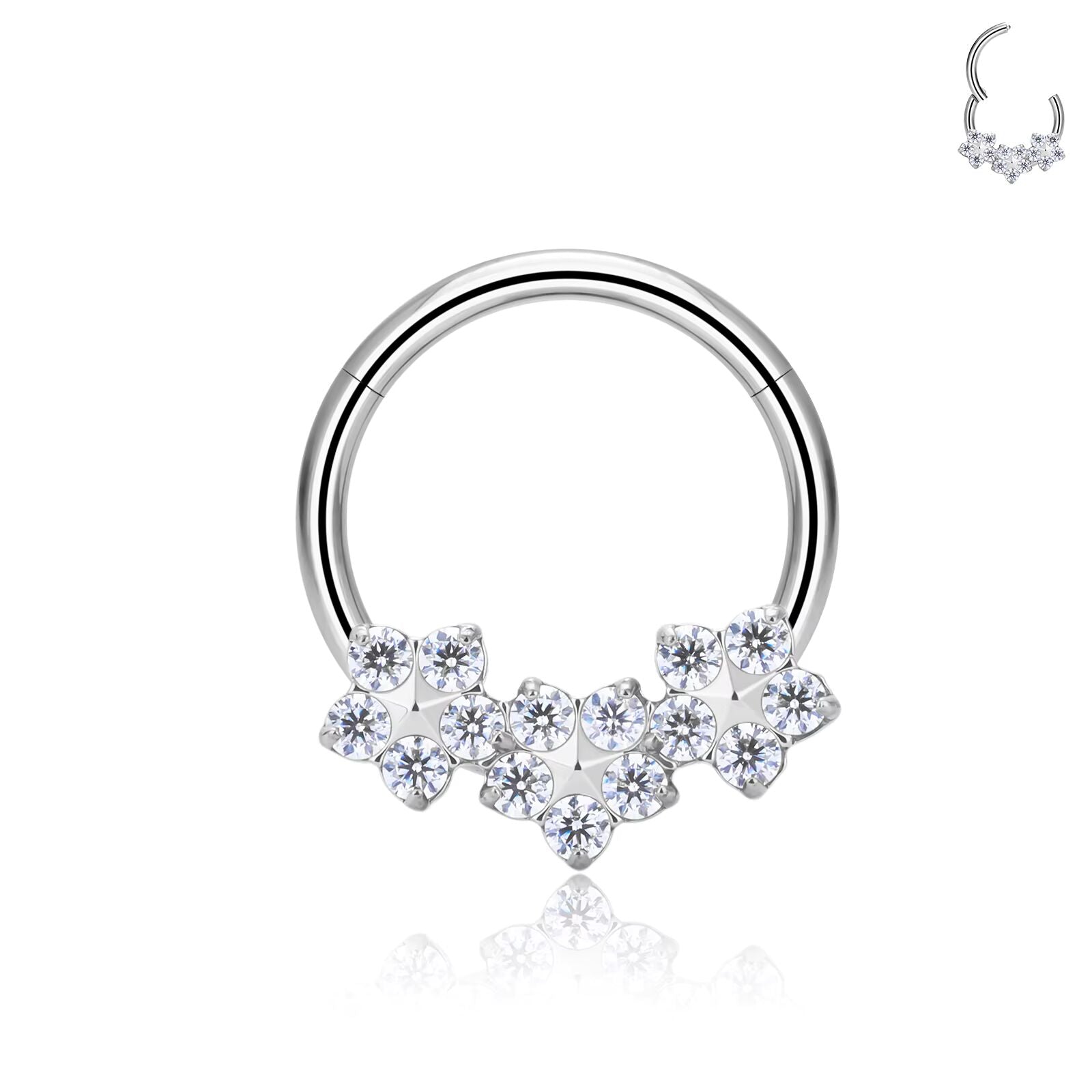 Piercing anneau en strass fleur géométrique en Titane argenté 💎💧🔹