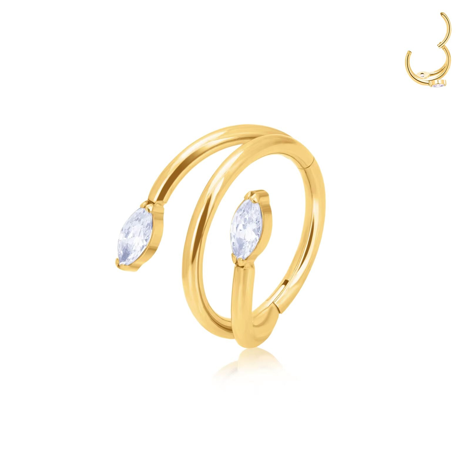 Piercing anneau double spirale avec strass marquise en Titane doré 💎💧🔹