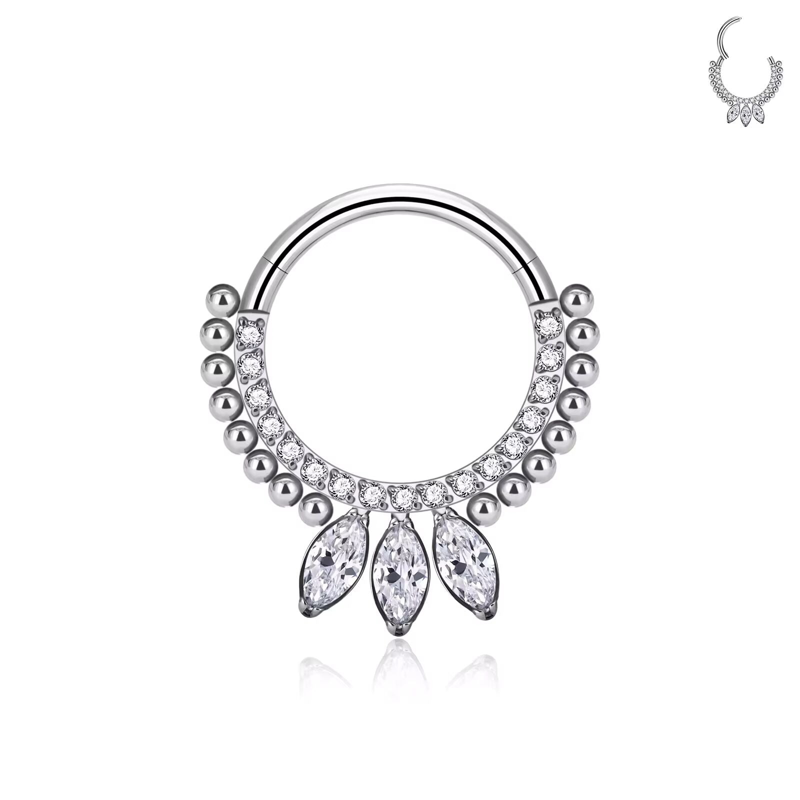 Piercing doré orné de perles et strass avec pampilles en strass marquise en Titane argenté 💎💧🔹