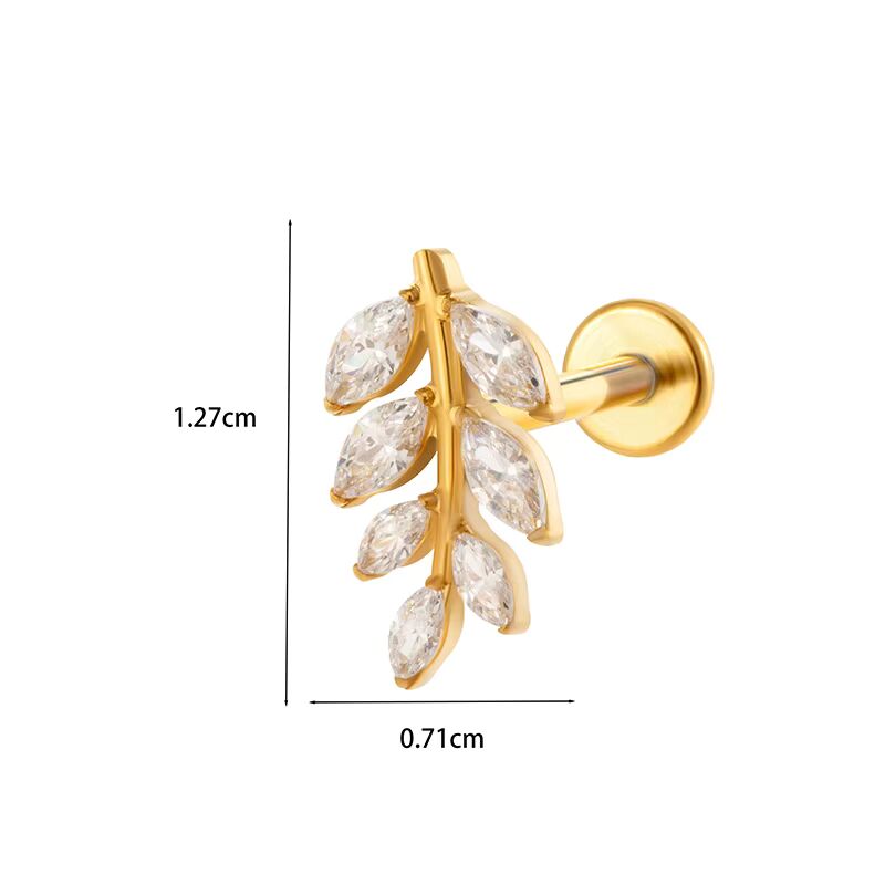 Labret feuille large à strass (1.27 cm x 0.71 cm) en Titane doré 💎💧🔹