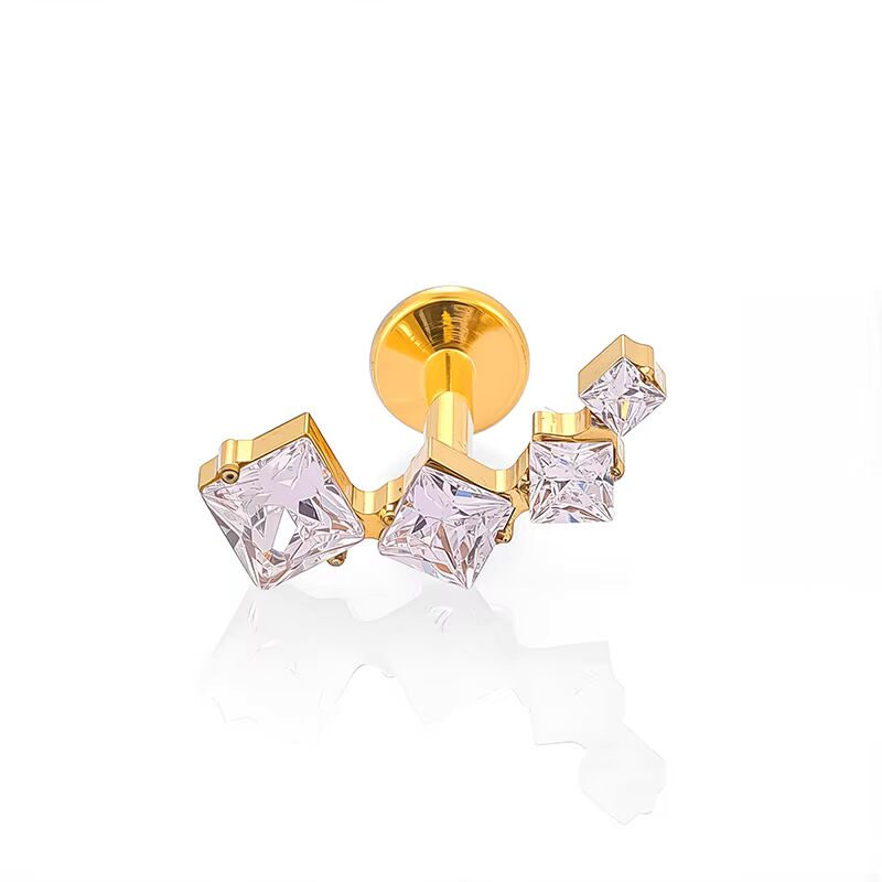 Labret formé de Cristaux Carrés Étincelants Titane doré 💎💧🔹
