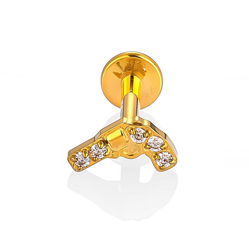 Labret en forme de pistolet serti de strass en Titane doré 💎💧🔹