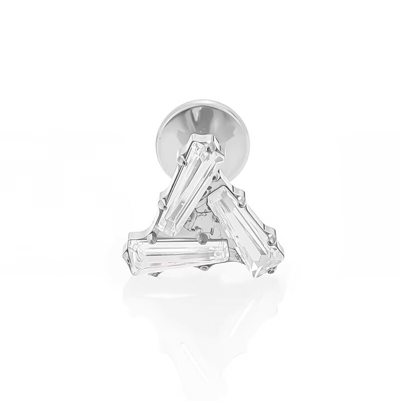 Labret Triangulaire à Strass Baguettes en Titane argenté 💎💧🔹