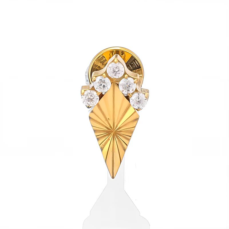 Ce labret doré se distingue par un motif géométrique rayonnant surmonté de strass. Une pièce audacieuse au style presque art déco.